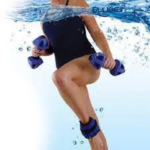 - Dumbbells: Variable directional resistance with the turn of the wrist. Contoured ergonomic design supports lower back whilst the adjustable belt allows for a custom fit with an easy on & off quick-release clip. High density material for perfect neutral buoyancy, vertical balance and comfort in the water.